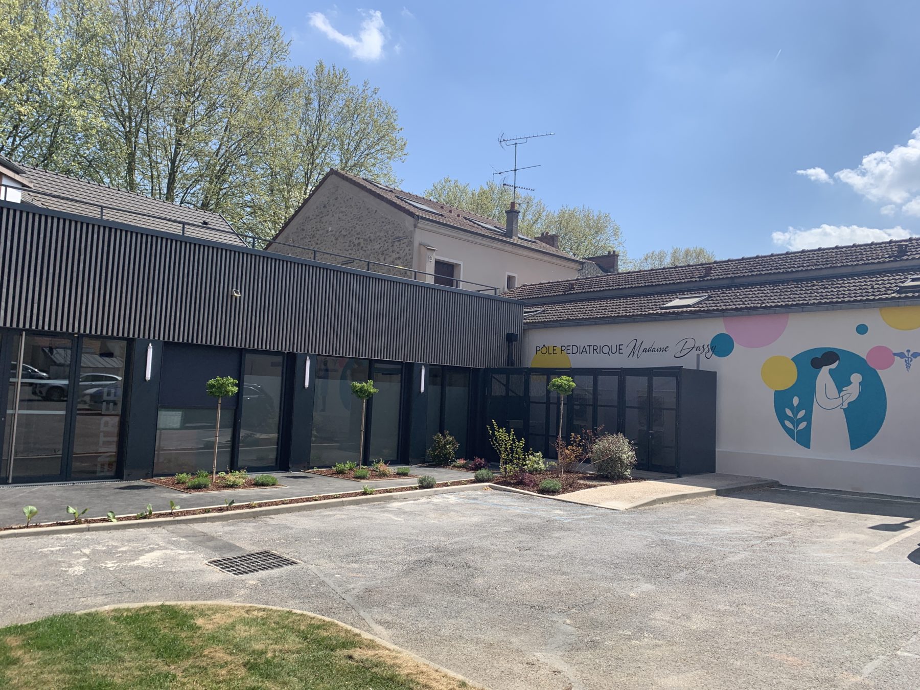 Le pôle médical Dassy, situé en plein centre-ville de Meaux, s’est récemment agrandi avec la réalisation d’une unité pédiatrique entièrement dédiée aux soins des enfants. Ce nouveau bâtiment de plain-pied de 123 m² accueille trois cabinets médicaux, une salle d’attente avec un espace de jeux, un coin allaitement et des sanitaires adaptés aux jeunes enfants et aux personnes à mobilité réduite.